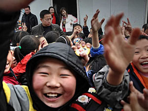 启动仪式后,由1616导航公司的杨文欣女士和歌星孙悦,分别为孩子们在新教室上了第一堂电脑课和音乐课。